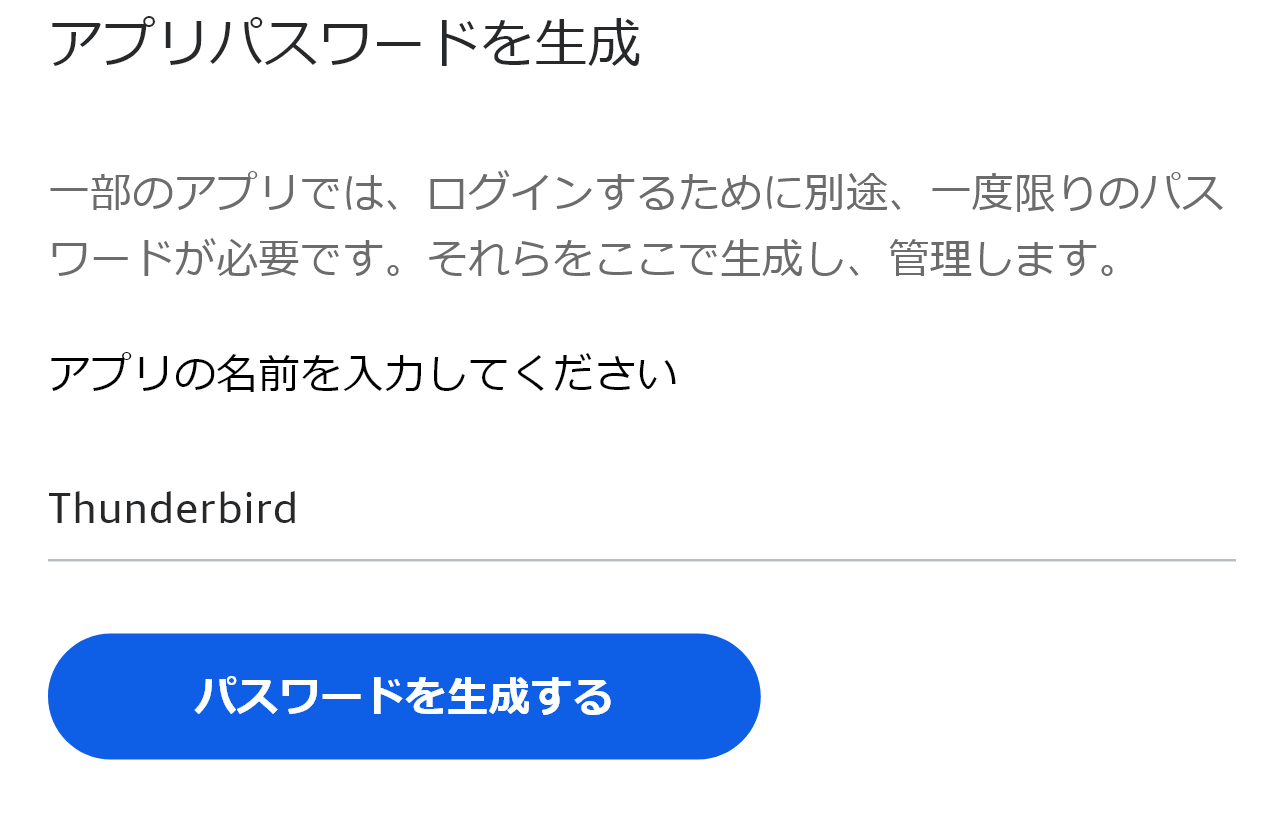 * 2025年10月19日記 Thunderbird の OAuth2 認証でエラーが返ります。アプリパスワードを使用してください。