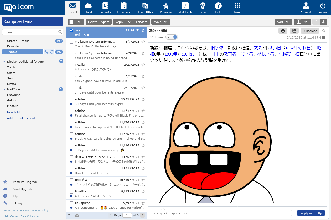 現在はGMX Mailが運営しており、機能面では GMX の方が優れていますが、Mail.com の方が選択できるドメインが多く、@dr.com、@email.com、@post.com などの珍しいものも揃っています。